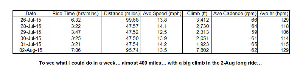 And now it is late August - with only a few days to go - and I am just doing easy 30 mile rides on alternate days and then Monday I pack the bike up and get ready to go...