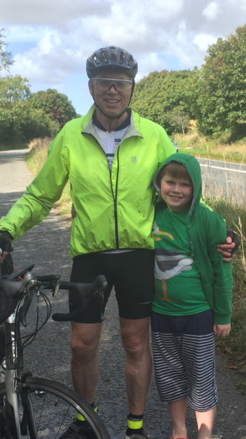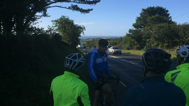 At the second stop of the day, we were just about to get going when my wife's car pulled up (they were off to the Viking Exhibition at Falmouth before meeting us that evening, and had just spotted this large group of cyclists and stopped) and it was just great to see Penny and Will.