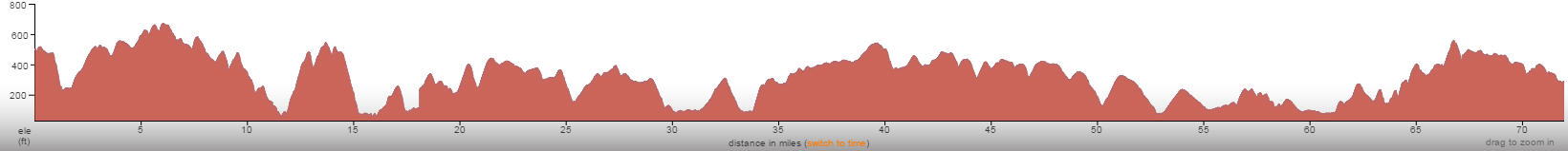 So the stats: cycled 73 miles, ave. speed 10.77 mph, 6:40 hrs on the bike, climbed 6,030 feet, ave. temp 15.4 centigrade.
