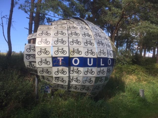 But on a cycle path I found this - not sure what it is - but a cycling theme. It was about 8 ft high. Any ideas?