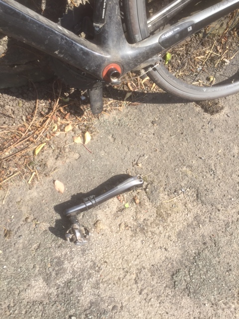 And then coming to within 10 miles of the overnight stop in Wigan - disaster struck. As I was pedaling up a small hill I felt my left foot disengage from the bike - normally I am clipped in - but it did not feel like my foot clicked out - as there was some other weight moving my foot around. I wobbled and stopped to find that my crank had come off the bike and was banging around on the floor.