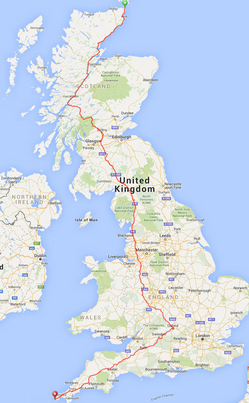 In October 2014 at a review meeting with Mr. Maynard, I was given the all clear with the statement that I was 'cancer free' and that as I was recovering so well and my fitness was good would I like to get involved in a 'little fundraising' event that Mr. Maynard was arranging - 'a bike ride' - 'sure' I said, 'where are we going?' The team was going to do an 'end to end' ride from one end of the country to the other. John O'Groats to Land's End (JOGLE). Approx. 1000 miles, 100 miles a day, and would I like to participate. I was in, though there was some miscommunication. Nick had asked if I would like to be involved, thinking I might do one part, e.g. one 100 mile section, while I had assumed I would do the ride, i.e. the whole thing. I will be doing the whole 1,000 miles!!!