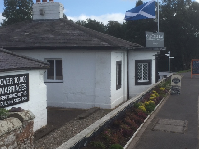 Before long we come to the last house in Scotland. Of course this is Gretna where in days of old people used to elope to get quick weddings... hence the sign about 10,000 marriages.